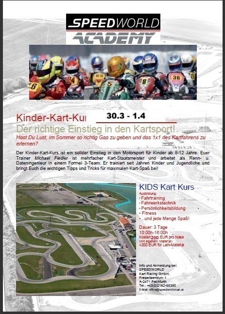 Kart Kinderkurse: Der ideale Beginn mit der Motorsport Karriere. Hier werden 3 Tage Kartsport geboten. Nach diesem Kurs steht dem freien Fahren und Racing auf Allen Bahnen der